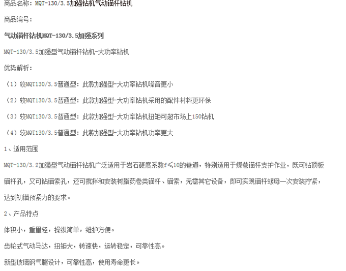 MQT-130/3.5(大功率黄金版)气动锚杆钻机