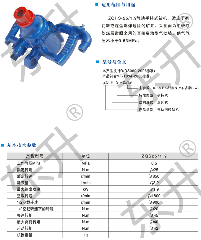 ZQHS-25/1.9气动手持式钻机(风煤钻)