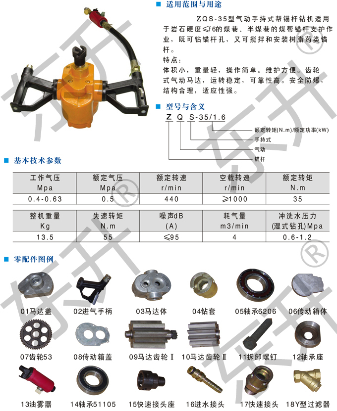 ZQS-35/1.6气动手持式钻机